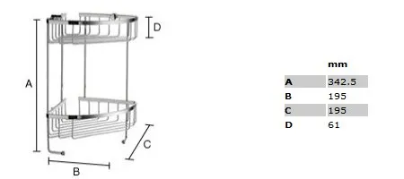Dvojitá odkladacia polička rohová, mriežka SMEDBO
